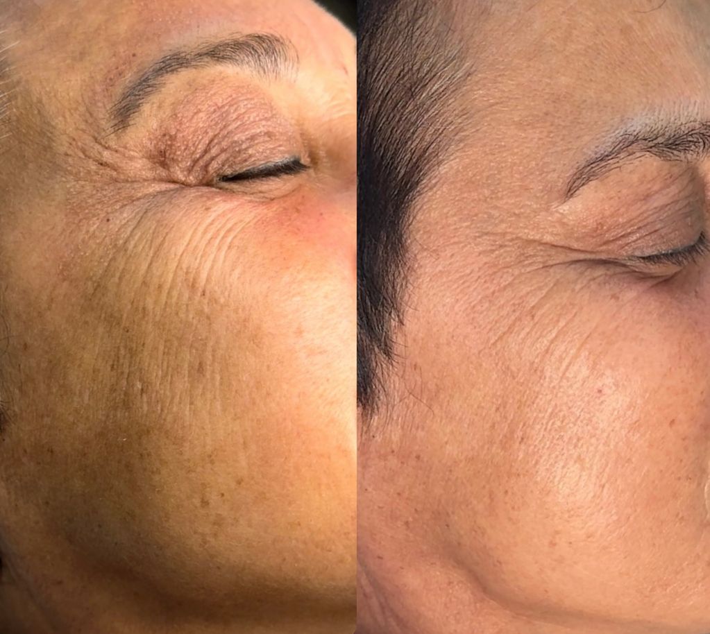 Most clients describe the treatment as mildly uncomfortable, with a warm, tingling sensation. A topical numbing cream is applied before the procedure to ensure comfort throughout.